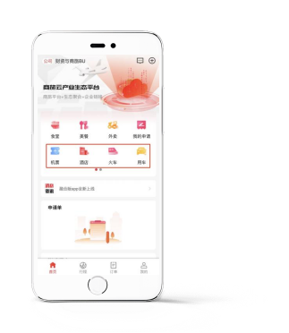 使用了这套系统,在一个程序上就可以预订机票、订酒店、买火车票、打车,还拓展了食堂(企业食堂管理)、到店、外卖、福利、企业缴费等几个频道。